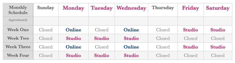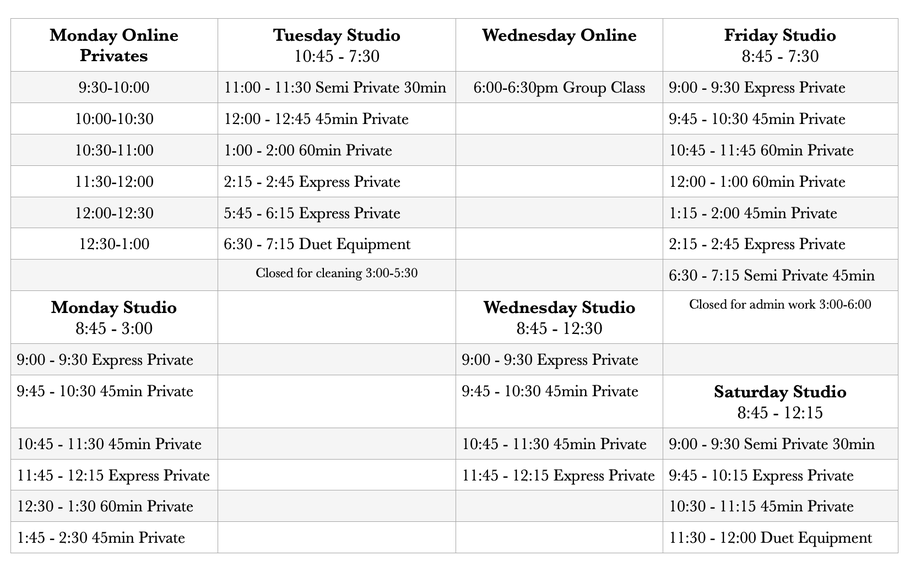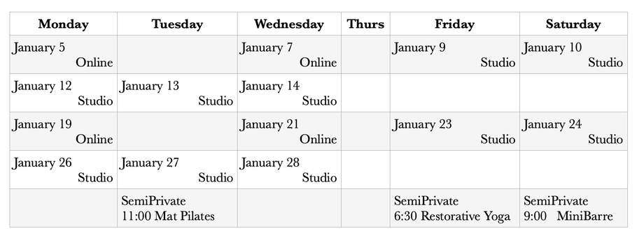 The SemiPrivate sessions listed are the specific classes offered during January 2026. The SemiPrivate classes change monthly.